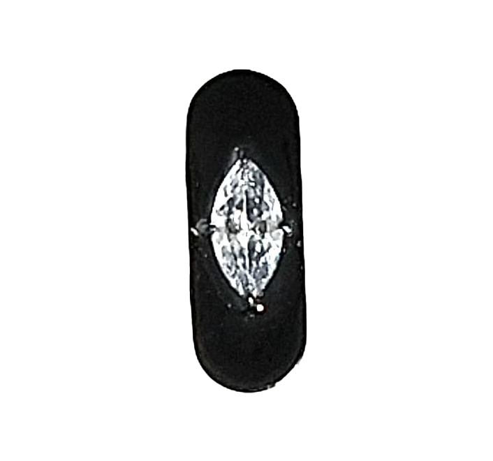 Oval Silver Earring Black Polished Enamel White Cubic Zirconia |