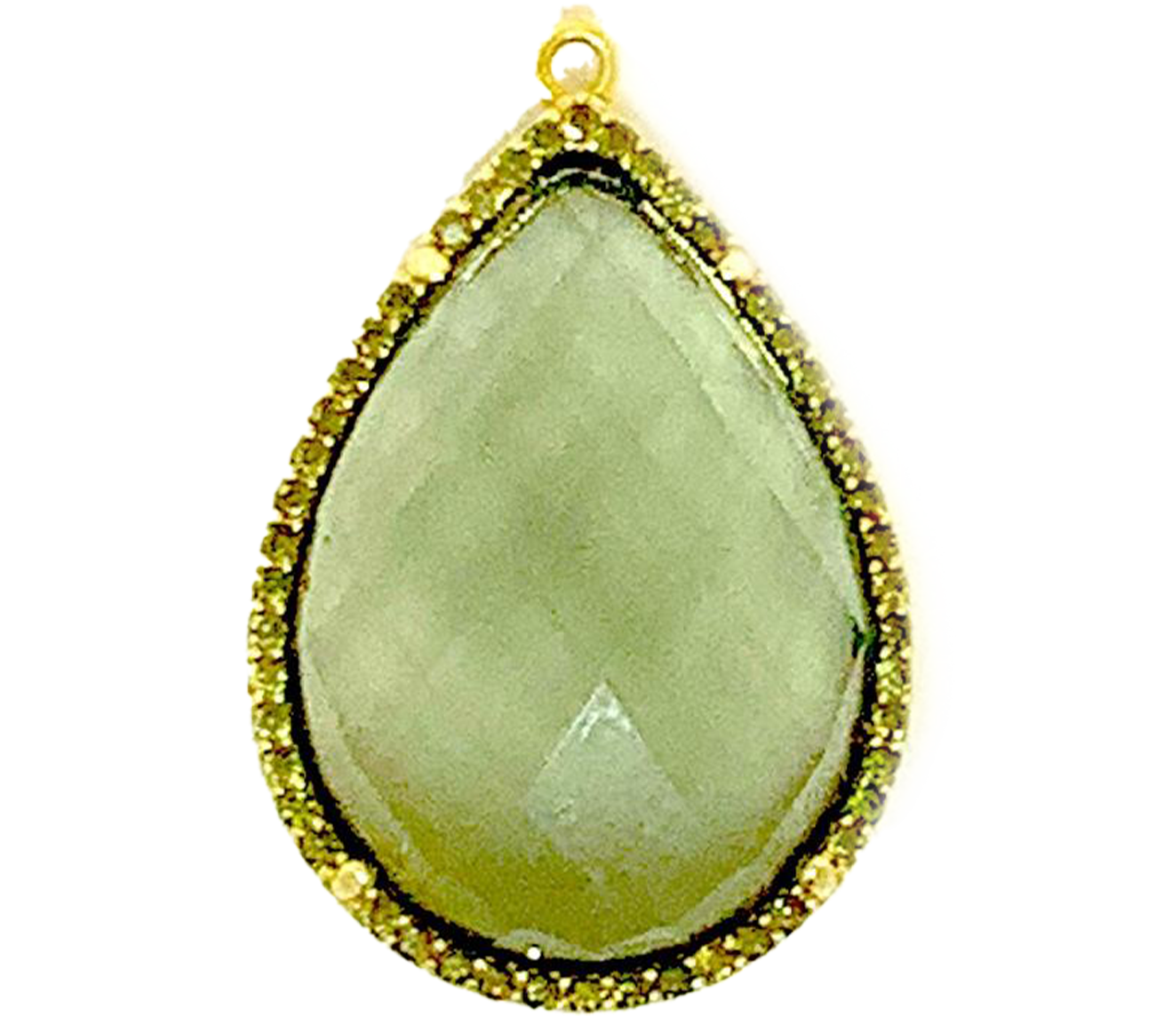 Green Transparent Stone Drop Pendant Silver Peridot Zircons Yellow Gold Plated
