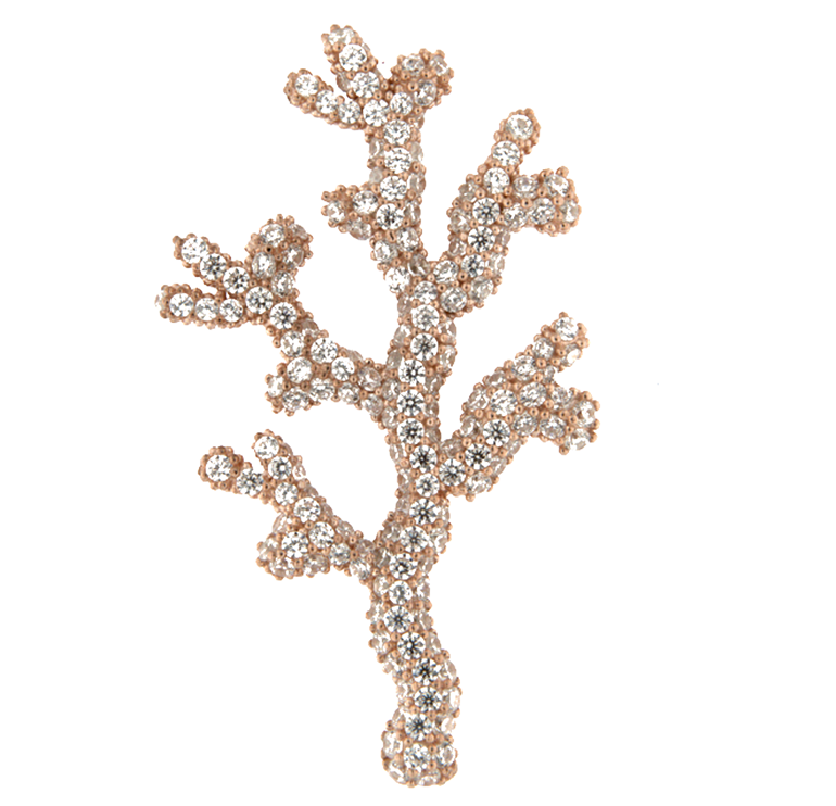 Coral Small Silver with White Zircons Rose Gold Plated Earring