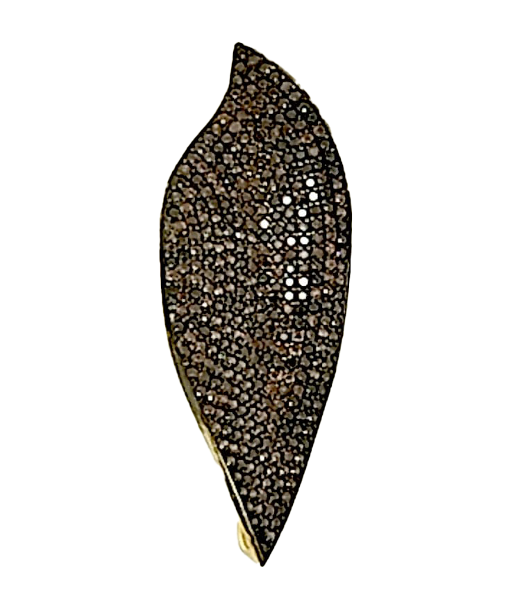 Earring Leaf Silver Zircons Brown Yellow Gold Plated