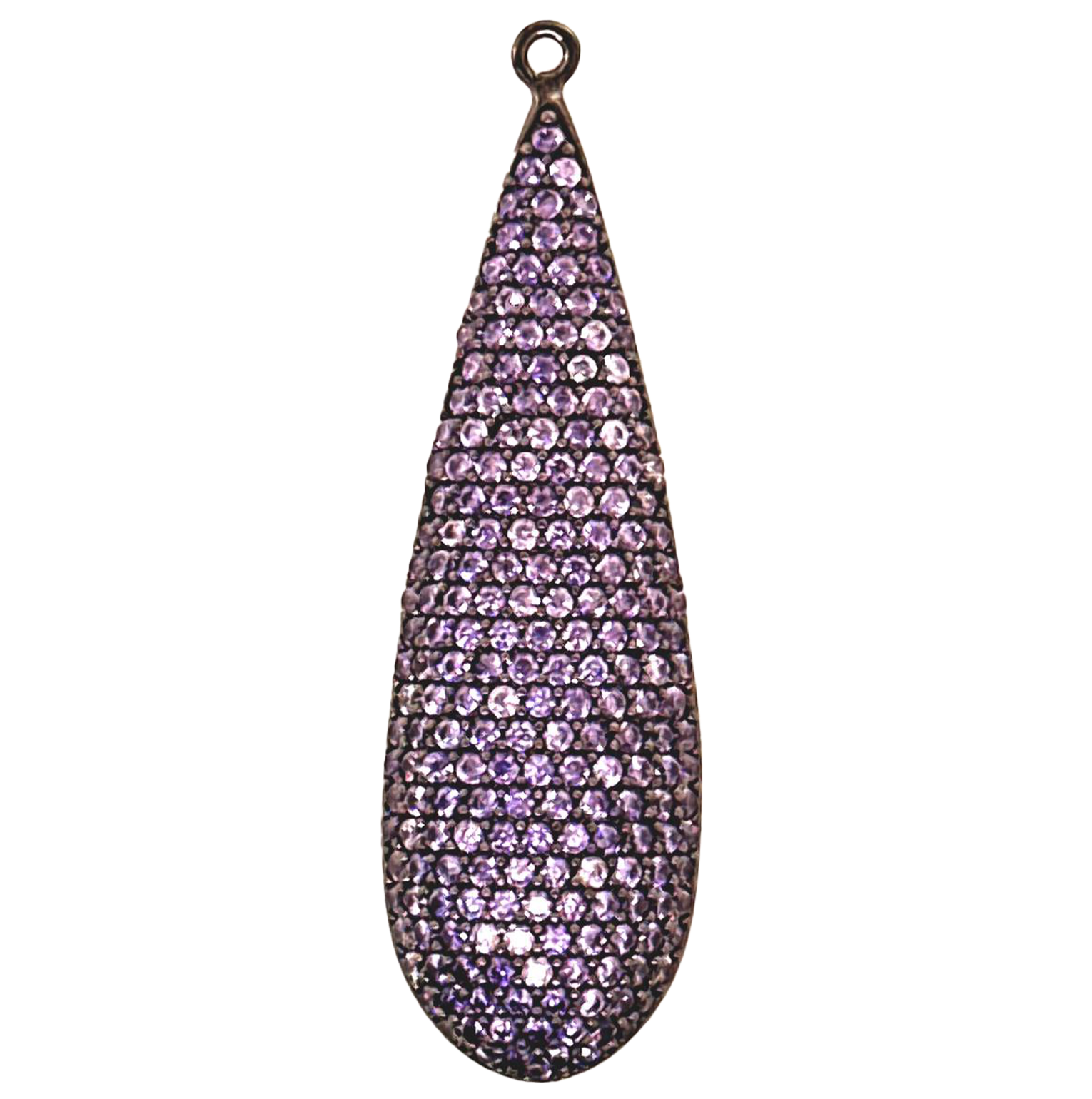 Long Drop Pendant Silver Purple Zircons Black Rhodium