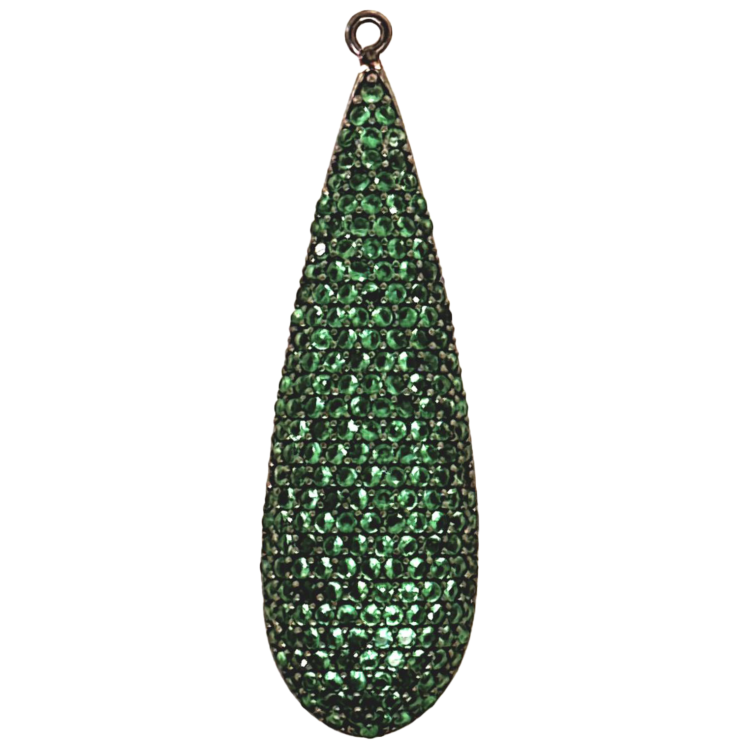 Long Drop Pendant Silver Green Zircons Black Rhodium
