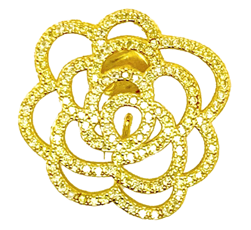 Pink Openwork Earring in Silver with Yellow Zirconia, Yellow Gold Plated