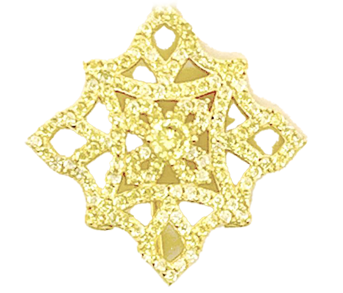 Openwork Rhombus Earring in Silver with Yellow Zircons, Yellow Gold Plated
