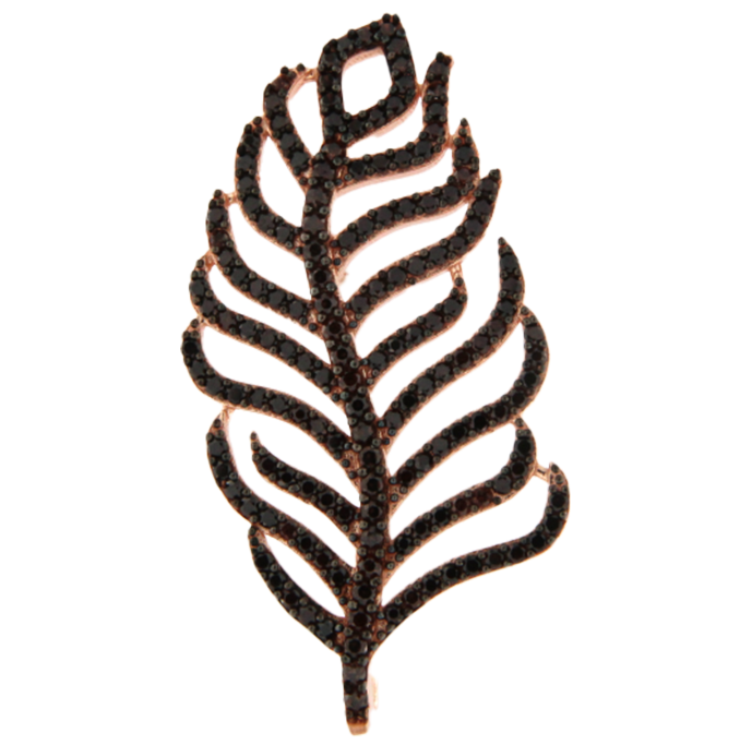 Silver Feather Earring Zircons Brown Plated Rose Gold