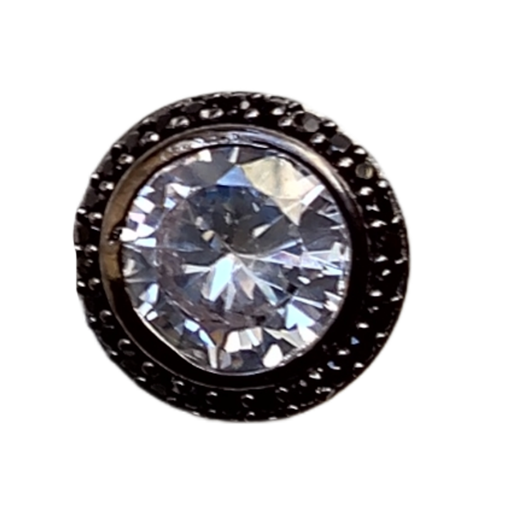Solitaire Halo Earring in Black Zircon, 925 Sterling Silver and Black Rhodium