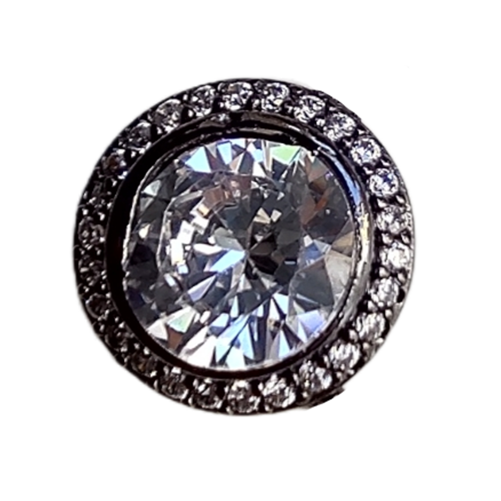 Solitaire Halo Earring in White Zircon, 925 Sterling Silver and Black Rhodium