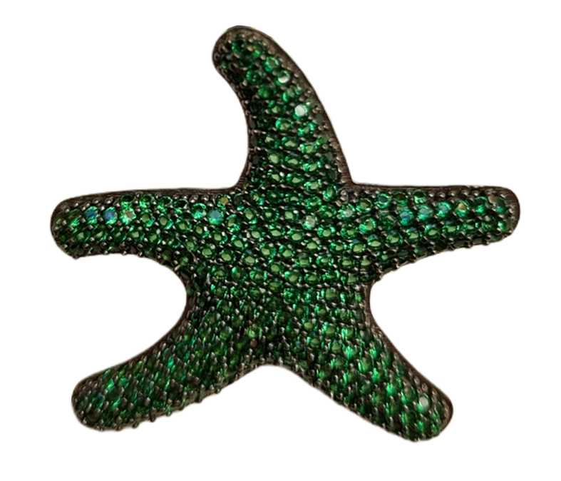 Starfish Earring Small Silver Green Zircons Black Rhodium