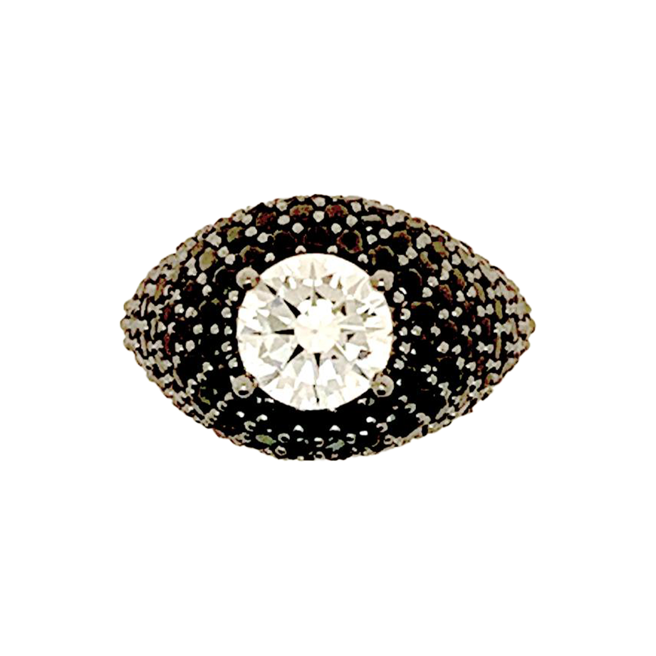 Anello Mignolo Argento Pietra Bianca Zirconi Neri Rodio Nero