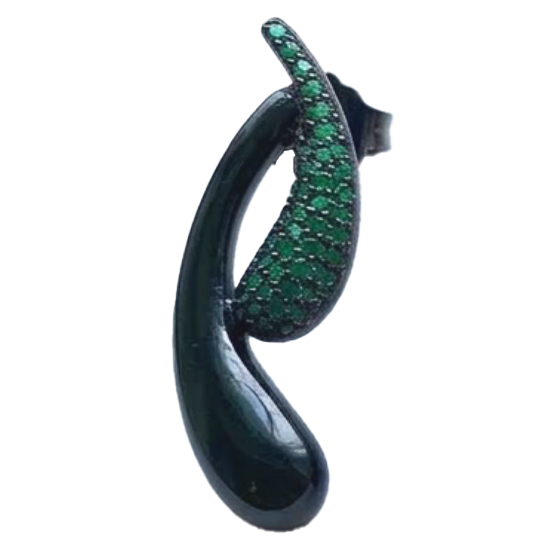Orecchino 2 Gocce Argento Zirconi Verdi Rodio Nero