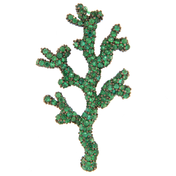 Orecchino Corallo Small Argento 925 con Zirconi Verdi Rodio Nero
