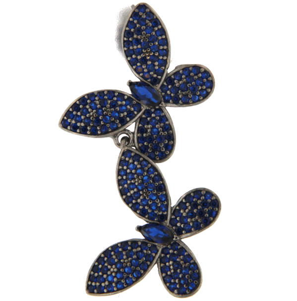 Orecchino Doppia Farfalla Argento 925 Zirconi Blu Rodio Nero