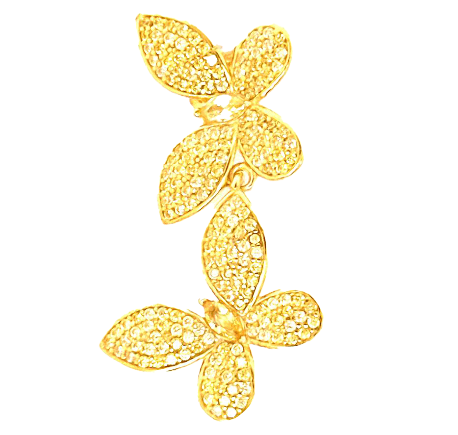 Orecchino Doppia Farfalla Argento 925 Zirconi Giallo Placcato Oro Giallo