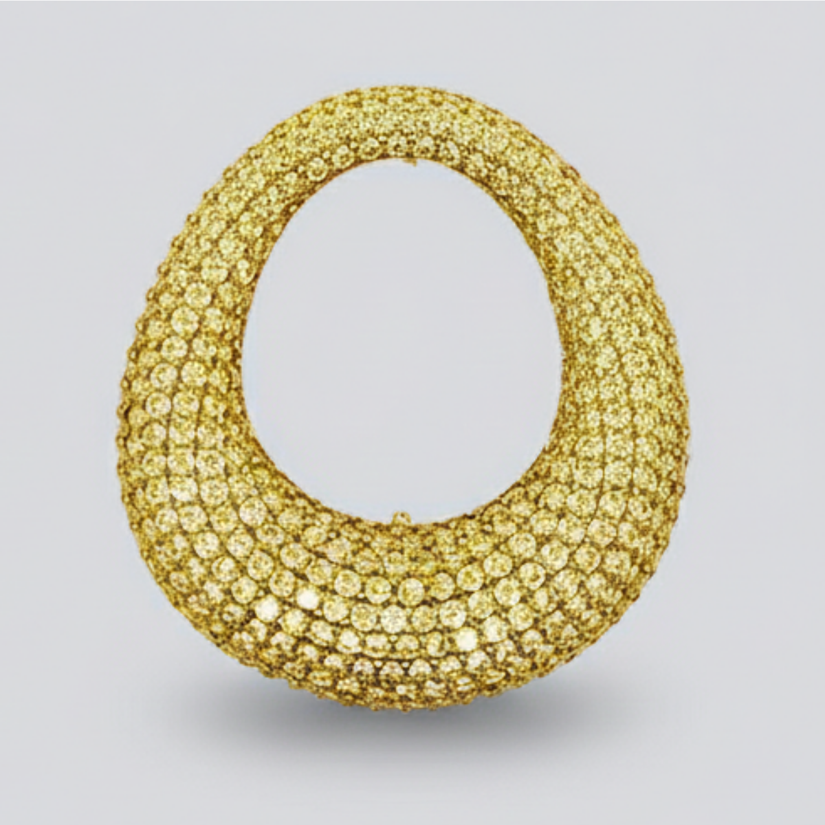 Orecchino Ovale Big Bucato Argento 925 Zirconi Gialli Placcato Oro Giallo