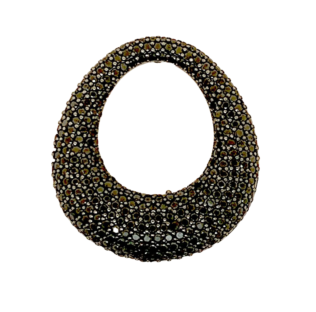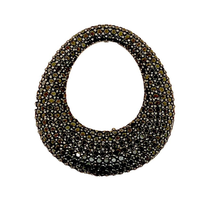 Orecchino Ovale Big Bucato Argento 925 Zirconi Neri Rodio Nero