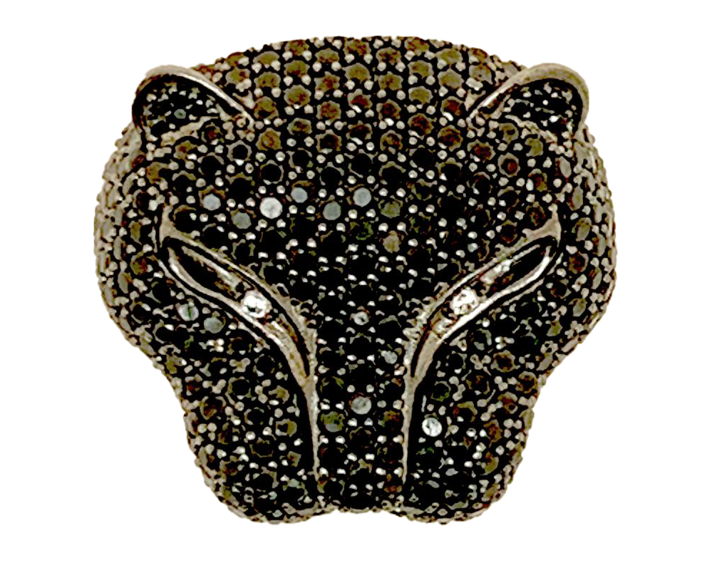 Orecchino Testa Pantera Big Argento Zirconi Neri Rodio Nero