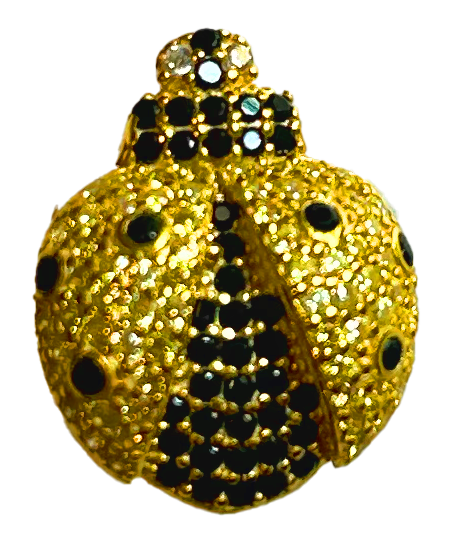 Pendente Coccinella in Argento 925 con Zirconi Gialli e Neri Placcato Oro Giallo 1,3 x 1,7 cm.