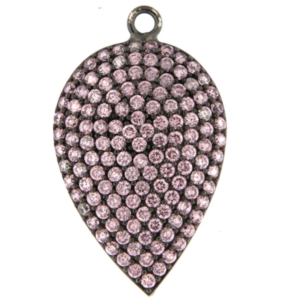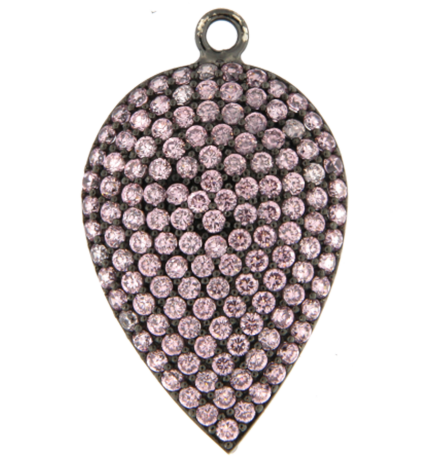 Pendente Goccia Big Argento 925 Zirconi Rosa Rodio Nero