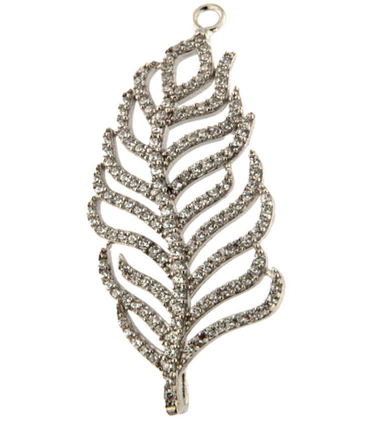 Pendente Piuma in Argento 925 con Zirconi Bianchi Rodio Bianco