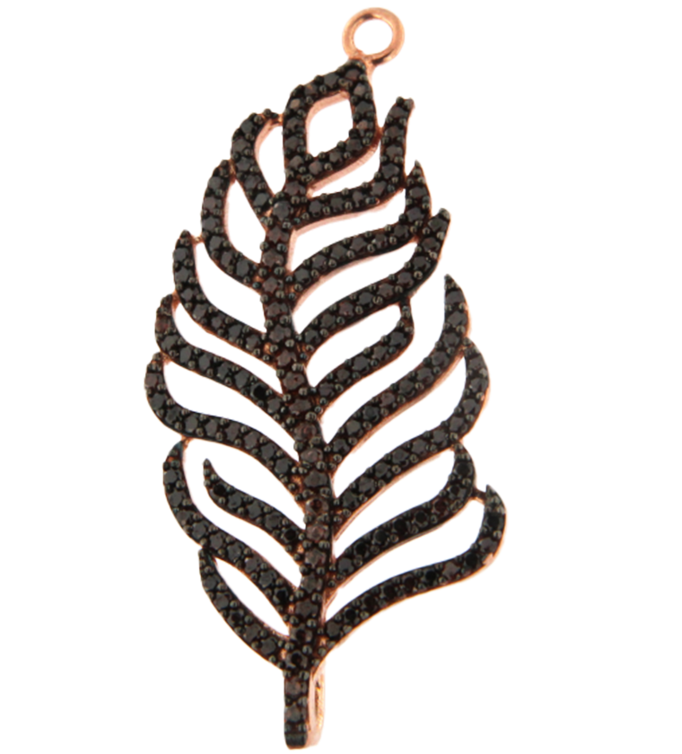 Pendente Piuma in Argento 925 con Zirconi Brown Placcato Oro Rosa